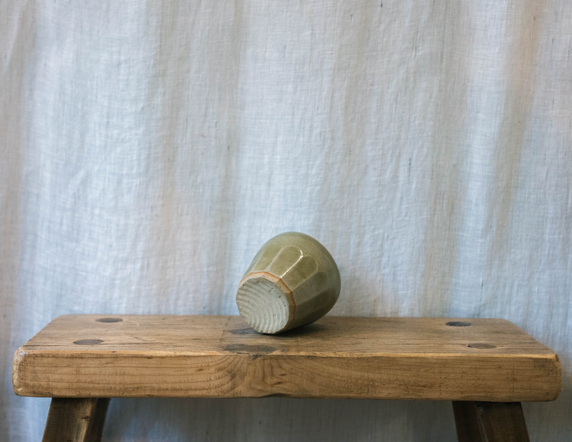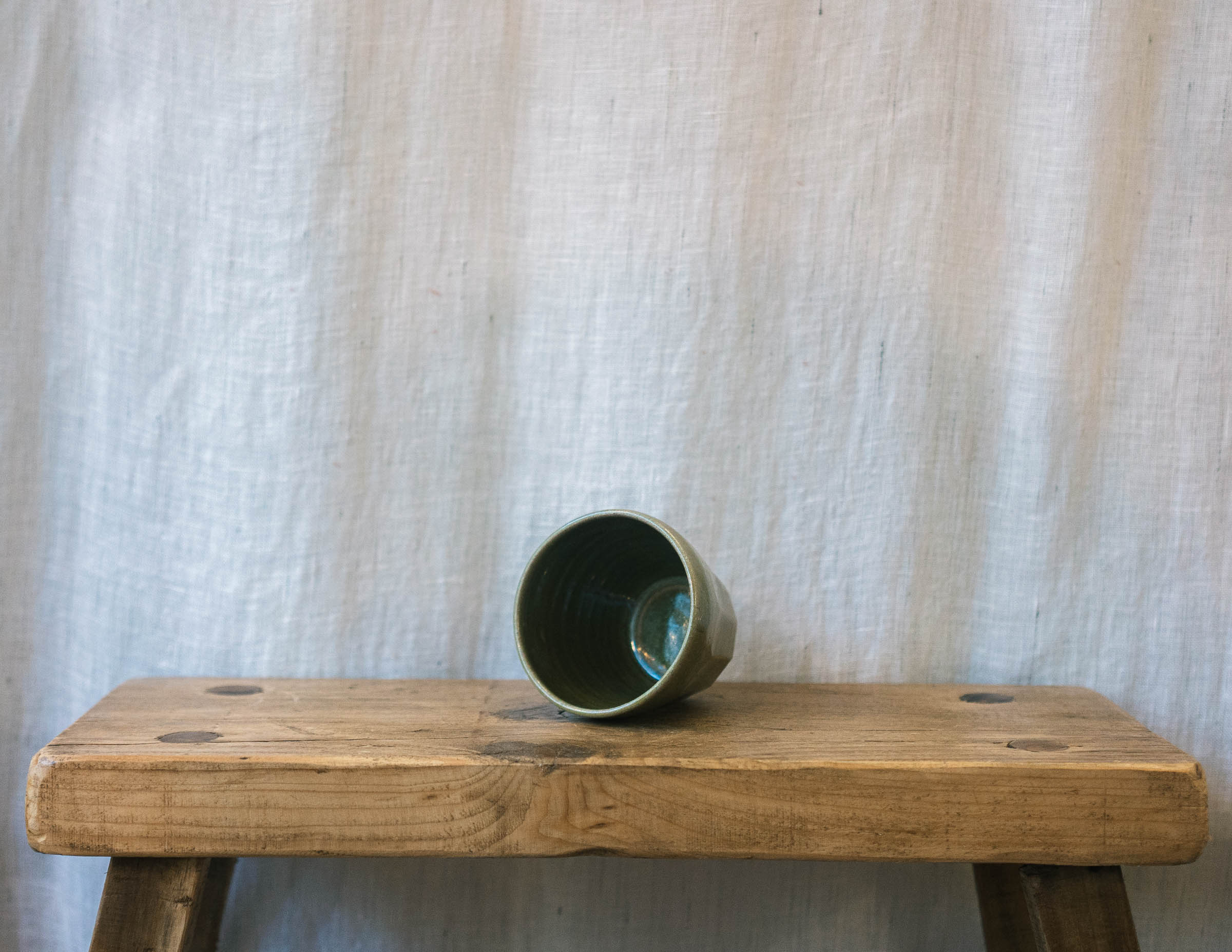 Stoneware espresso tumbler in a glossy green glaze.